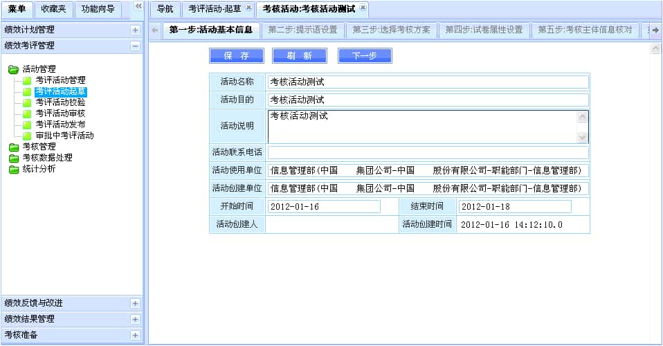 XX集团经过多方面考察和比较,最终选择使用eB开发平台来实现其绩效考核系统。该系统从2011年中开始筹备,历时四个月的需求分析、设计和开发、测试工作,最终于2011年11月份上线,并进行了第一次集团总部约3000人的绩效考核,从准备考核指标、设计考题到邮件分发考核,以及最后对考核结果进行分析,形成word版考核报告,共花费一个月的时间,顺利完成任务。