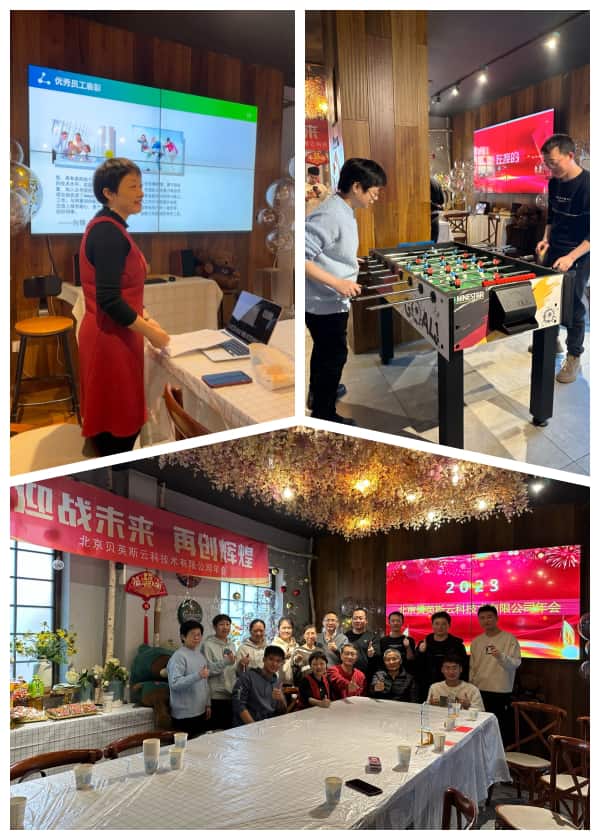 2023年2月11日,北京贝英斯云科技术有限公司在萌驼小院,召开以"迎战未来,再创辉煌"为主题的2023年度公司新春年会,全体员工齐聚一堂,大家在愉快的氛围中迎接新年,迎接新的工作。