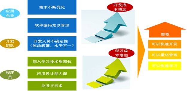 - 互联网的开放性和共享性,让更多非专业人员需要和体验应用开发,需要更简单的工具支持非专业人员或初级人员的应用开发需要。