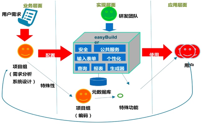- 提炼应用系统中的通用功能,进行配置开发,不需要编码;