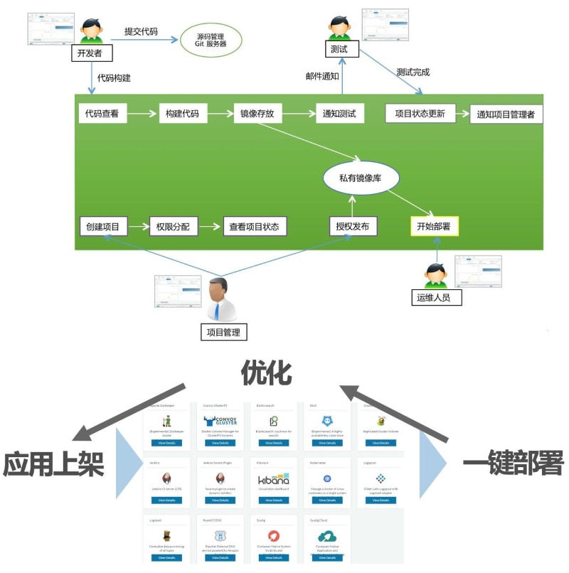 使用 Rancher 应用商店功能提高运维团队工作效率,将常用应用打包上架到应用商店后续使用时可实现一键部署,且支持版本管理及回滚功能。是传统上百倍环境准备效率的提升。